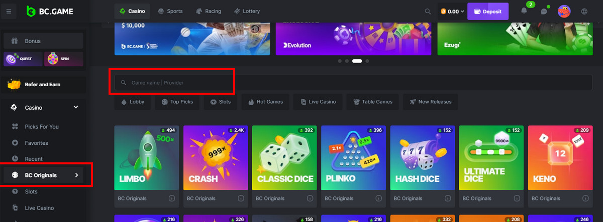 - Go to the casino. Click the “Casino” tab found in the top menu.
