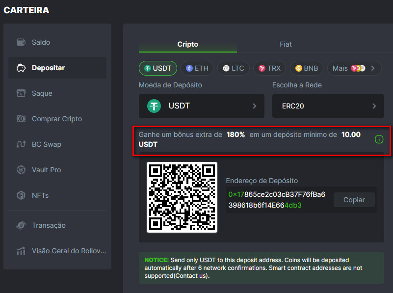 - Make a deposit. BC.Game will issue an address that is uniquely generated based on what type of deposit is being made. If you are on your desktop, paste that address into your crypto wallet under “recipient”. If you are doing this with a mobile device, scan the QR code with your Wallet App so that the deposit address auto-populates.