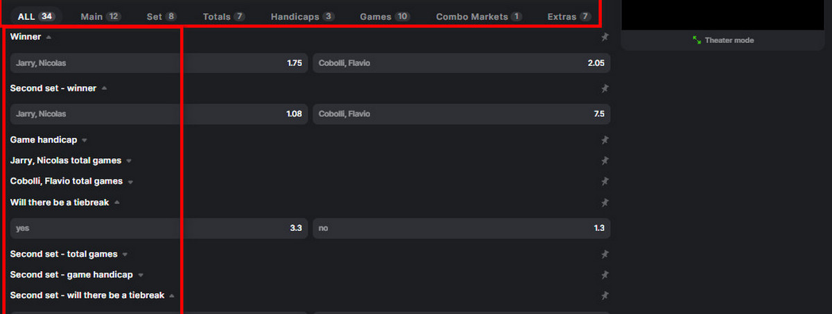- Set winner. You can place a bet on the set that you think a player will win, and this is a more granular bet compared to the Match Winner bet.