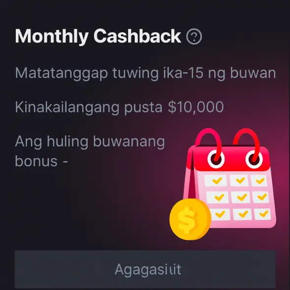 • Mekanismo . Ang bonus na ito ay nagbibigay-daan sa mga manlalaro na mag-claim ng mga reward kada 10 minuto, na nakabatay sa kanilang mga aktibidad sa pagtaya sa nakaraang 7 araw, sa gayo’y nagbibigay-insentibo sa patuloy na paglalaro at pakikipag-ugnayan.