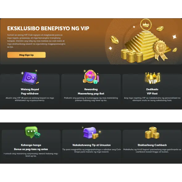 • Gold VIP (Mga Antas 22-37) . Itinataas ang level-up na reward sa 204.00 BCD, na may Recharge Bonus na nagbibigay ng 10-16% ng taya*1% sa magkakasunod na pitong araw, kasama ng pinahusay na lingguhan at buwanang cashback at mga bonus sa sports, kasama ang pagpapatuloy ng lucky spin sa bawat pag-unlad ng antas.